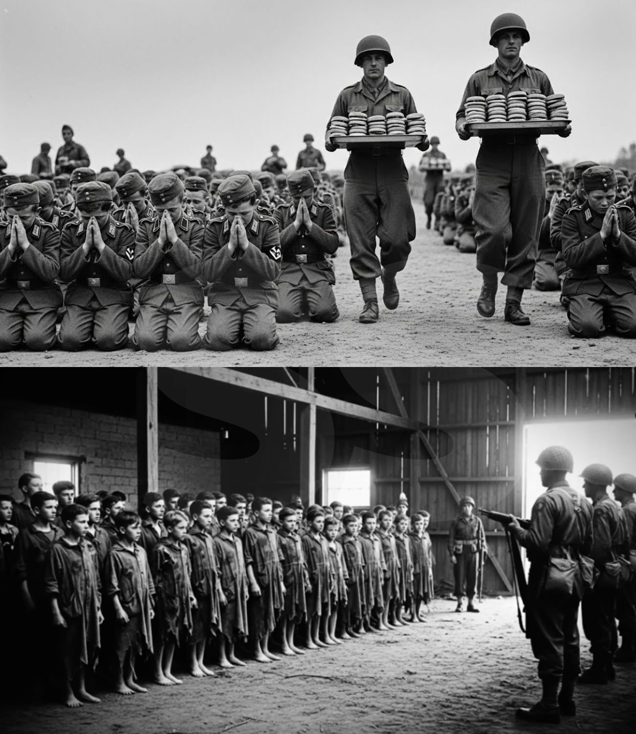 Néhányan csendben sírnak, mások repedt hangon éneklik a Deutschland Über Alles dalt. John G. „Jack” West kapitány Bostonból figyeli őket. 28 éves, és van egy fia, aki ugyanolyan idős, mint a legkisebb fiú előtte. Leengedi a puskáját, és kiáltja: „Tűzszünet!” Egyedül, üres kézzel sétál előre. A fiúk a lövésre várnak. Ehelyett Jack belenyúl a táskájába, és előhúz 20 darab viaszpapírba csomagolt C-adag hamburgert, amelyek még melegek a tábori konyhából. Egyenként kezdi kiosztani őket. Az első fiú, a 14 éves Wolfgang Becker Drezdából, remegő kézzel veszi át a hamburgert. 1943 óta először érez igazi marhahús illatát. Beleharap, és térdei megrogynak. Leül a földre, és a zsemlébe sír. Percek alatt minden fiú eszik. Néhányan extra hamburgert tömnek a zsebükbe, mások megölelik az amerikaiakat, és vannak, akik csak bámulják az eget, tele szájjal sírva. Jack leül közéjük a földre, és lassú németül mondja: „Ti gyerekek vagytok. Nektek vége a háborúnak.”